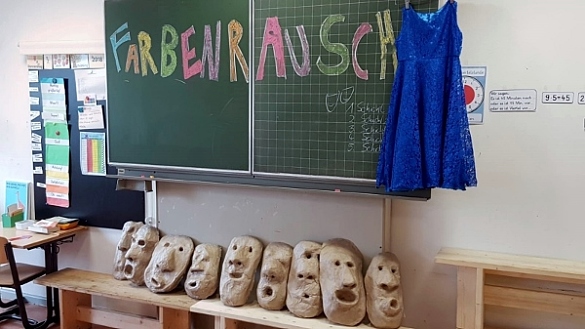Weitere Highlights bei den Kindern waren die Druckwerkstatt im Atelier, die Maskenbühne im Musikraum sowie die Musikwerkstatt im Forscherraum der Schule. Alle Kinder und auch die Erwachsenen hatten die ganze Woche über viel Spaß beim Erkunden der Farben, was sich auch am letzten Tag der Projektwoche im Rahmen der Präsentation am Nachmittag zeigte. Der Andrang zur Abschlussveranstaltung in der Turn- und Gymnastikhalle sowie in der gesamten Schule war riesig. Voller Stolz präsentierten die Schüler*innen ihre in den vergangenen Tagen erstellten Werke. Das abschließende Maskentheater der Klasse 3b sorgte für schallendes Gelächter in der Gymnastikhalle und stand sinnbildlich für eine gelungene Projektwoche, die wir in der Zukunft gerne einmal wiederholen wollen.