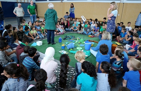 Einige mussten auf dem Weg zu ihrem Klassenraum auch noch einen Farbtunnel durchqueren, ein riesiges Farblotto passieren und der Saftbar widerstehen, ehe sie das bekannte Klassenzimmer betreten konnten.